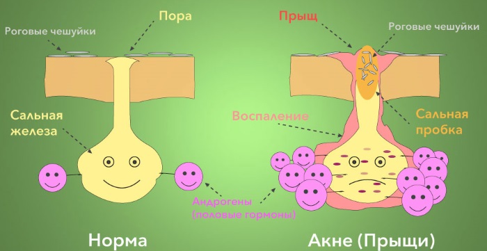 يمكن أن يكون انتهاك تقرن الجلد وراثيًا ، وكذلك مكتسبًا بعد أمراض جلدية مختلفة. مع هذا المرض ، تتعطل وظيفة التنظيف الذاتي للبشرة من قشور الجلد الميت ، مما يسد مسام الجلد والقنوات الإفرازية للعرق والغدد الدهنية. انسداد الغدد الدهنية والمسام تصبح كوميدونات ، وإذا انضم الالتهاب ، فإن حب الشباب.