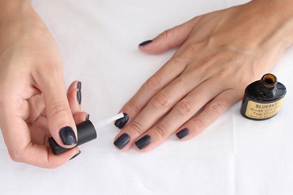 تطبيق ورنيش غير لامع عادي يسهل عملية تجميل الأظافر ، وفي النهاية يجب وضع طبقة علوية للحفاظ على الجمال لفترة أطول.