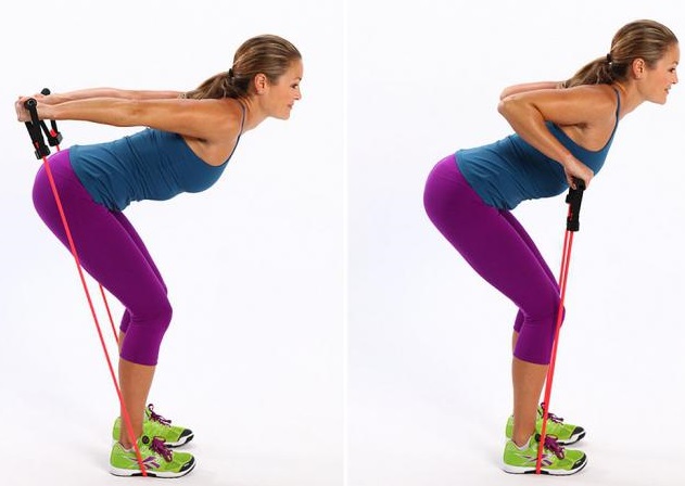 Latihan dengan tali elastik bertujuan untuk menggerakkan otot tekan, belakang dan bahu. Kelebihan peralatan sukan ialah ia memberikan beban, tidak termasuk penggunaan berat. Daya tegangan berbeza secara bebas. Latihan pita dapat membantu anda mengembangkan kelenturan, meningkatkan daya tahan, menurunkan berat badan dan menguatkan otot.