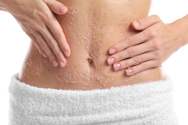 - Sapukan campuran ke bahagian badan dengan kesan regangan dan selulit.