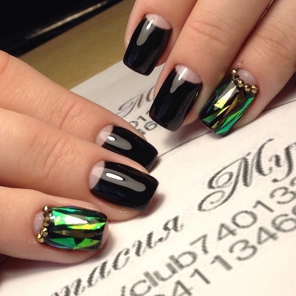 - Изрезане комаде стакла залепите према жељеном дизајну. Покријте бистрим лаком или завршним премазом (ако је маникир урађен гел лаком).
