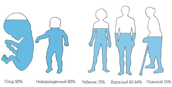 Људско тело се састоји од воде за око 45-70%, ова цифра може бити различита за мушкарце и жене.