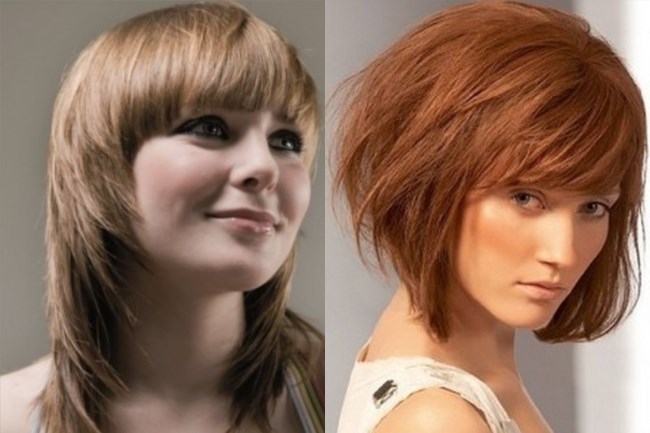 У овом случају су погодне боб фризуре, мердевине, у комбинацији са косим шишкама.