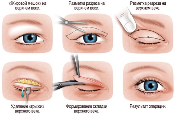 การผ่าตัดแก้ไขเปลือกตาบนเป็นหนึ่งในวิธีที่ยากน้อยที่สุดสำหรับผู้เชี่ยวชาญที่มีประสบการณ์ ขั้นตอนนี้ดำเนินการโดยผู้ป่วยนอกและโดยปกติจะต้องใช้ยาชาเฉพาะที่ ในกรณีที่ไม่มีข้อห้ามหากผู้ป่วยต้องการสามารถใช้การระงับความรู้สึกทั่วไปได้