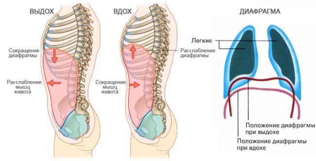 เมื่อปอดเต็มไปด้วยอากาศช่องท้องควรนูนในขณะที่ว่างก็ควรเว้า