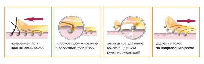 กระบวนการกำจัดขนด้วย "ทอฟฟี่" สำเร็จรูปเกิดขึ้นในขั้นตอน: