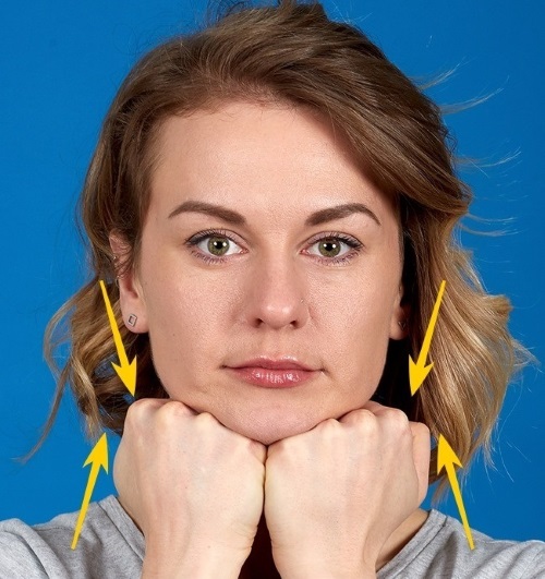 - กดหลังมือไปที่คางกดเล็กน้อยและในตำแหน่งนี้พยายามเปิดปากของคุณ