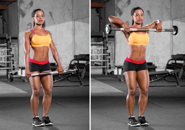 - ในท่ายืนบาร์เบลจะดึงไปที่คาง: 1 เซ็ต - 101-5 ครั้ง 2 เซ็ต - 6-8 ครั้ง
