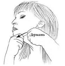 - Cằm bị véo bằng cách sử dụng các khớp ngón tay. Với một nỗ lực, nó được đưa dọc theo hàm về phía tai.