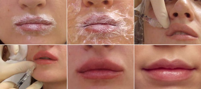 Nâng môi bằng axit hyaluronic là một thủ thuật đau đớn. Để giảm bớt cảm giác khó chịu trước khi bắt đầu thực hiện, vùng môi được xử lý bằng thuốc gây tê. Đây thường là thuốc mỡ, kem hoặc gel bôi. Tác dụng của nó kéo dài 45 - 60 phút.