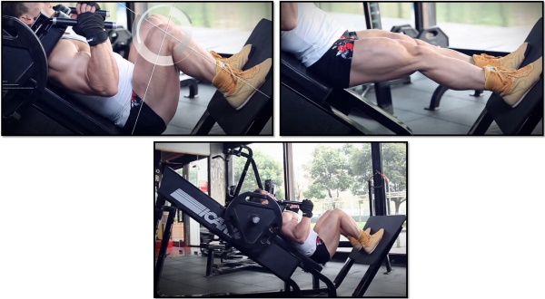 Trong trường hợp này, tải trọng được loại bỏ khỏi đầu bên của cơ tứ đầu. Ngoài cơ tứ đầu, trọng lượng của viên đạn do cơ mông đảm nhận. Điều này xảy ra khi bàn chân ở gần mép sau của bệ đỡ hơn.