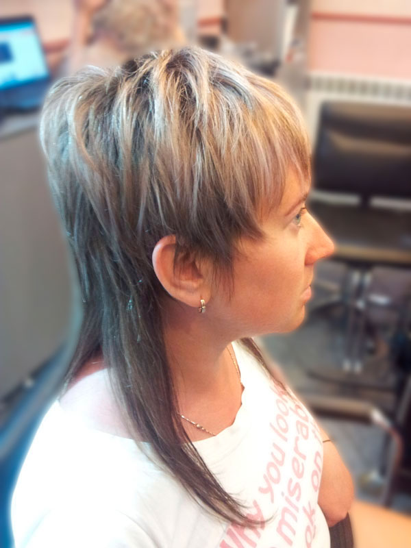 Vì lý do này, nhiều nhà tạo mẫu làm việc với phụ nữ trưởng thành thích giữ nguyên độ dài của tất cả các lọn tóc, để chúng dài ra ở phía sau đầu. Tóc có thể bị mỏng và cắt nhiều góc, vì kỹ thuật này cho phép bạn tạo độ phồng tối đa và tránh được những khiếm khuyết do tuổi tác.